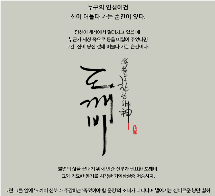 유덕화의 집을 찾은 도깨비, 이들의 인연은 신이 죽었을 때부터 시작된다. 신의 죽음을 안타까워했던 노비, 간절함을 듣고 환생한 김신에게 신은 불멸을 하며 자신의 사람들이 죽어가는 걸 지켜보라며 고통스러운 벌을 준다. 깨어난 그가 가장 먼저 할 일은 자신을 죽음으로 몰고 간 이들에게 복수, 그리고 노비의 죽음으로 첫 번째 벌을 받는다.