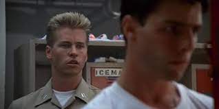 부푼 마음에 오토바이를 타고 질주하는 매버릭. 이렇게 이렇게 두 사람은 사랑에 빠지게 된다. 그 후 훈련은 계속되고, 역시 최고의 조종사인 아이스맨이 경쟁자가 된다. 그러나 아이스맨(발 킬머)은 멋대로인 매버릭을 좋아하지 않는다. 영화 탑건은 영상미, 스토리, 사운드트랙 어느 것 하나 모자람이 없다.